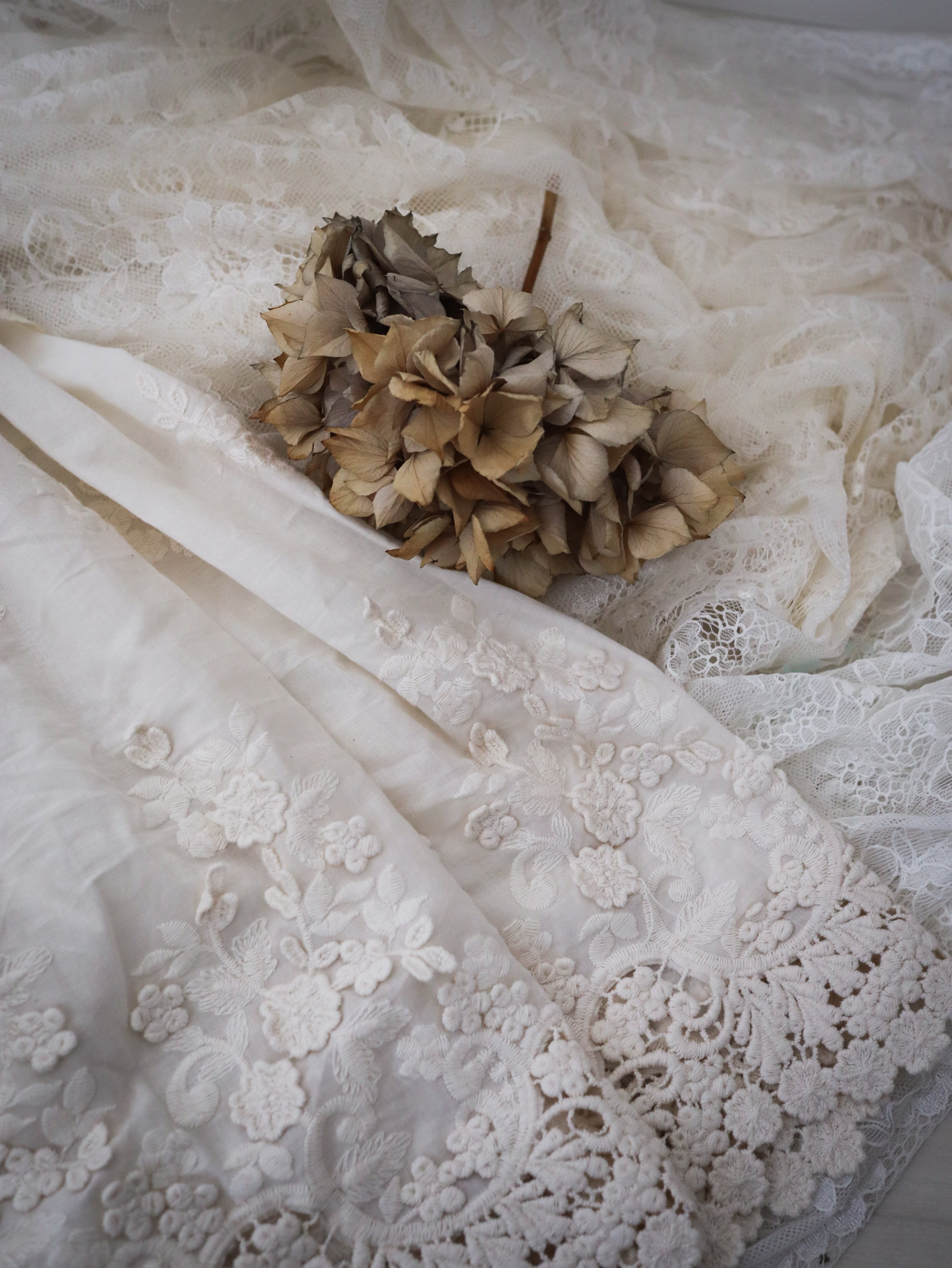 浮き出るようなお花の刺繍が可愛いいらしいエプロン。