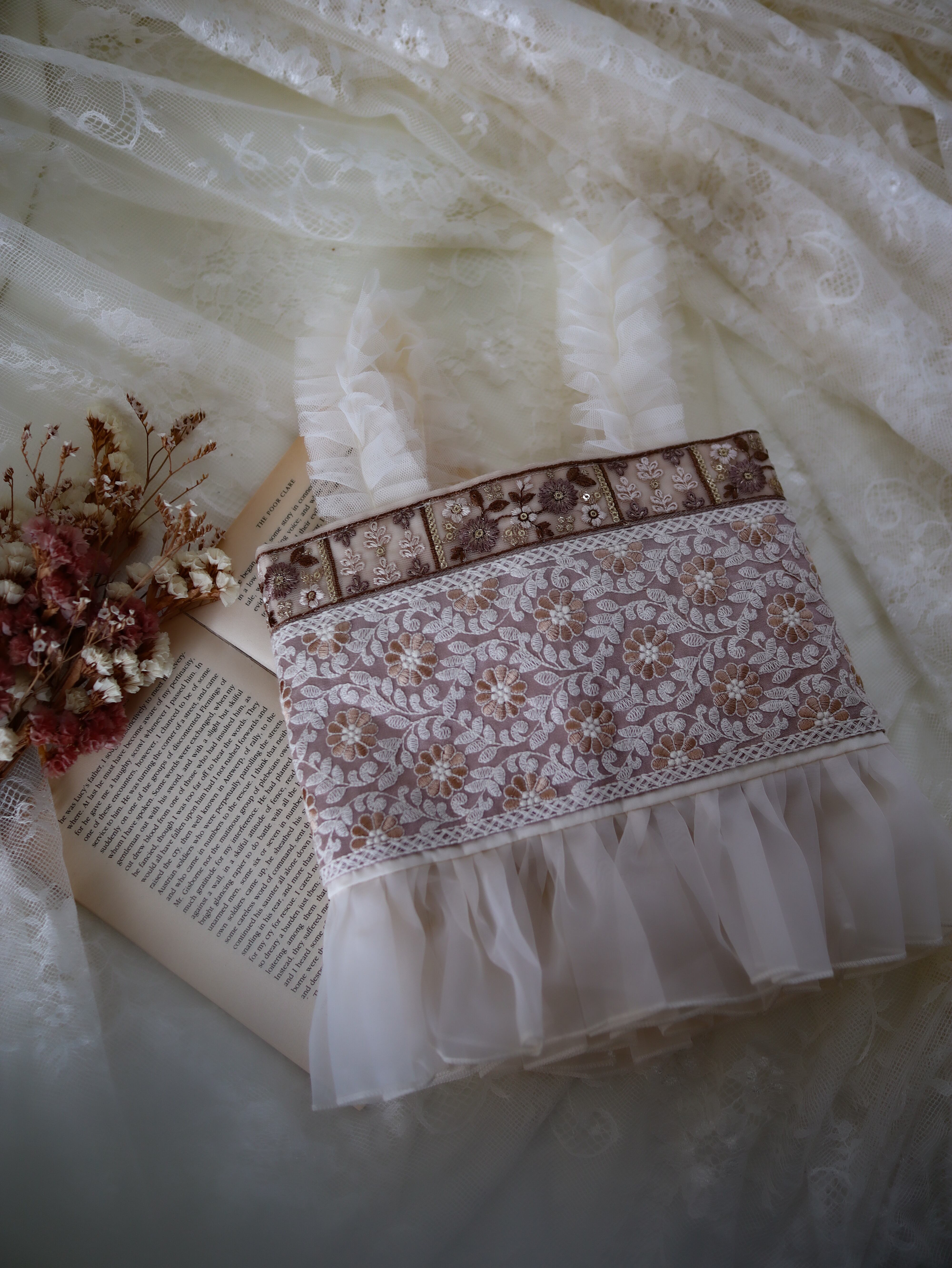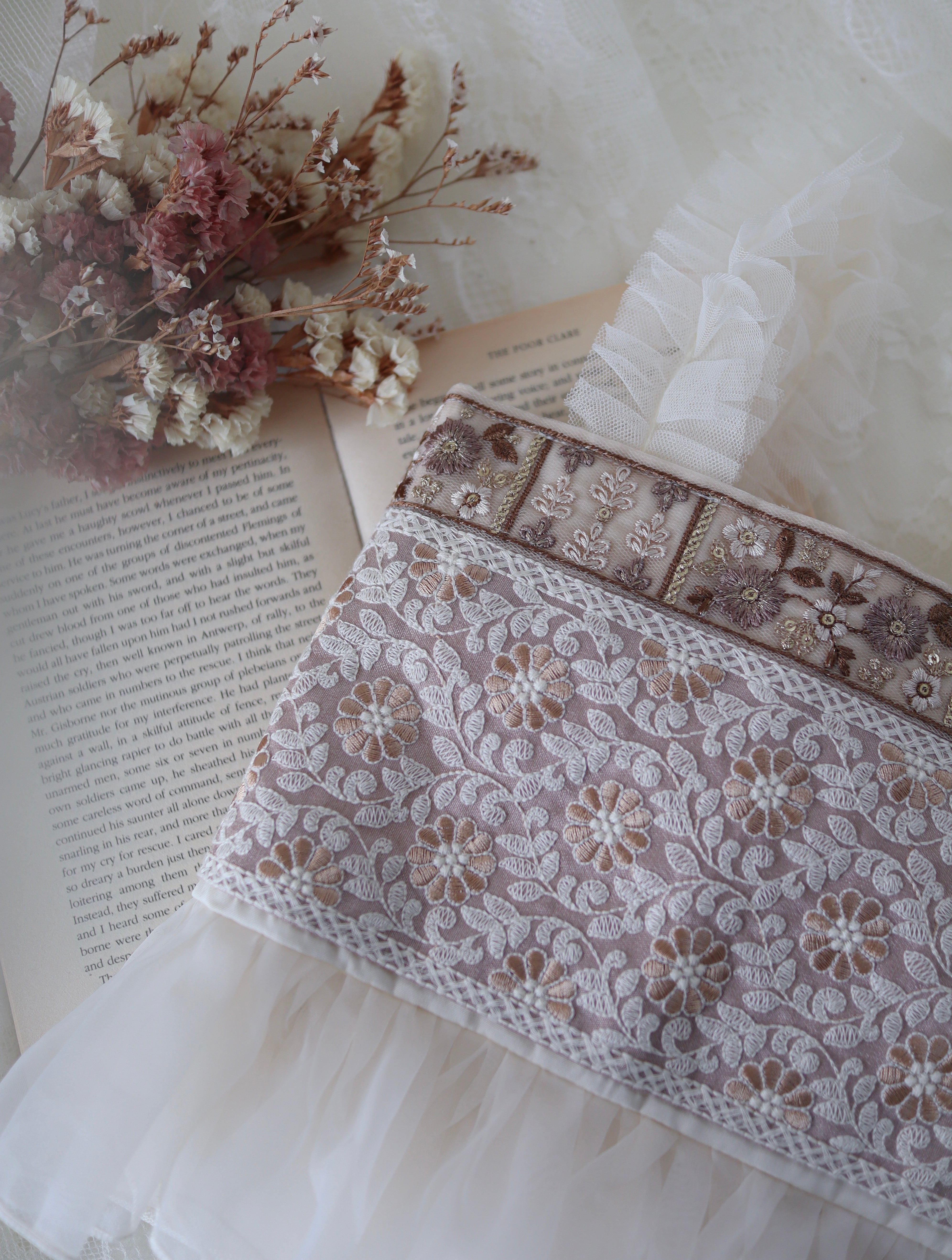 2種類のインド刺繍をあわせました。 かわいらしく優しい雰囲気でつけていただけます。 生地幅14cm 3-6y 胸囲 50cm