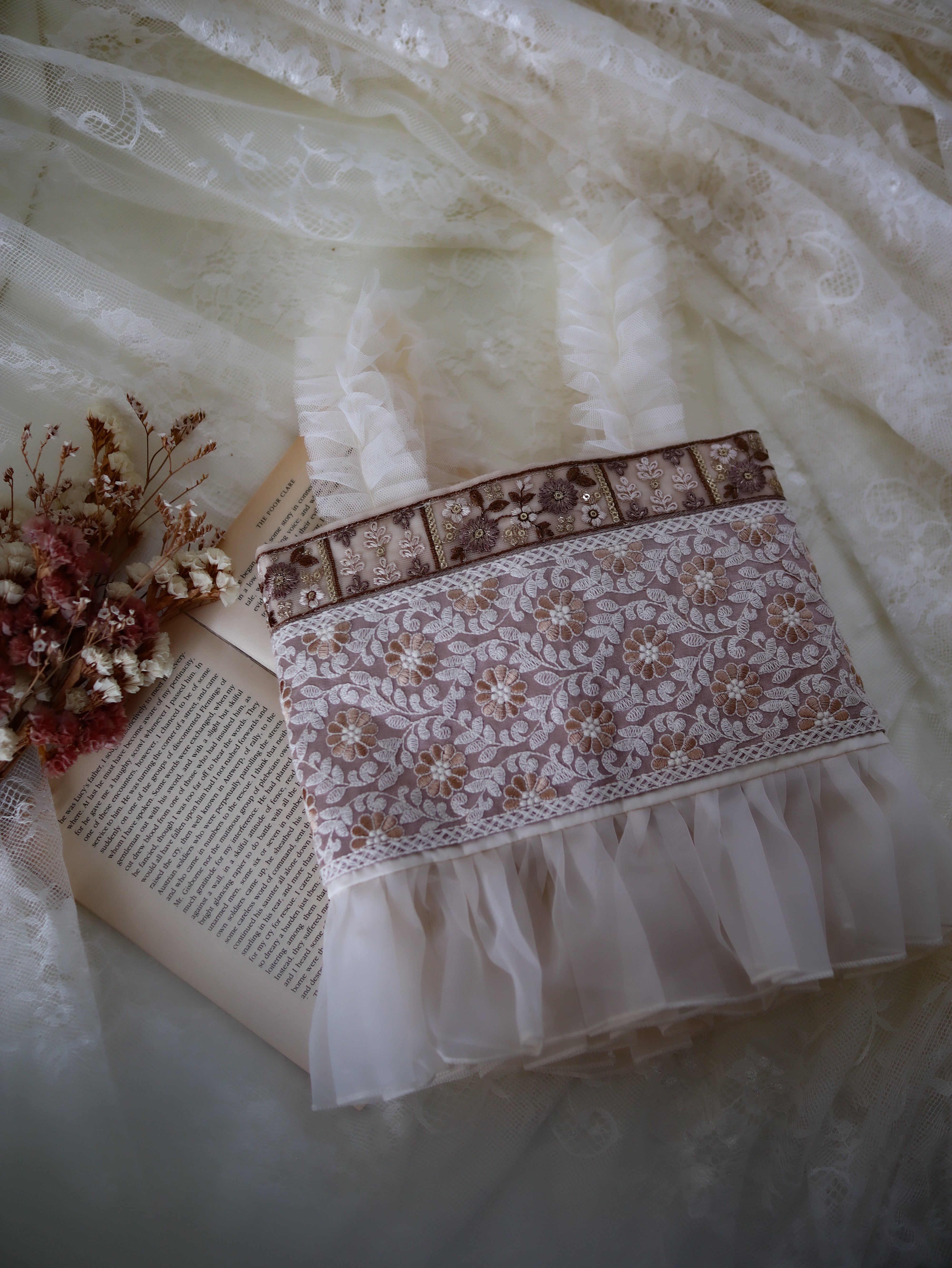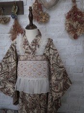 2種類のインド刺繍をあわせました。 かわいらしく優しい雰囲気でつけていただけます。 生地幅14cm 7-10y 胸囲 60cm