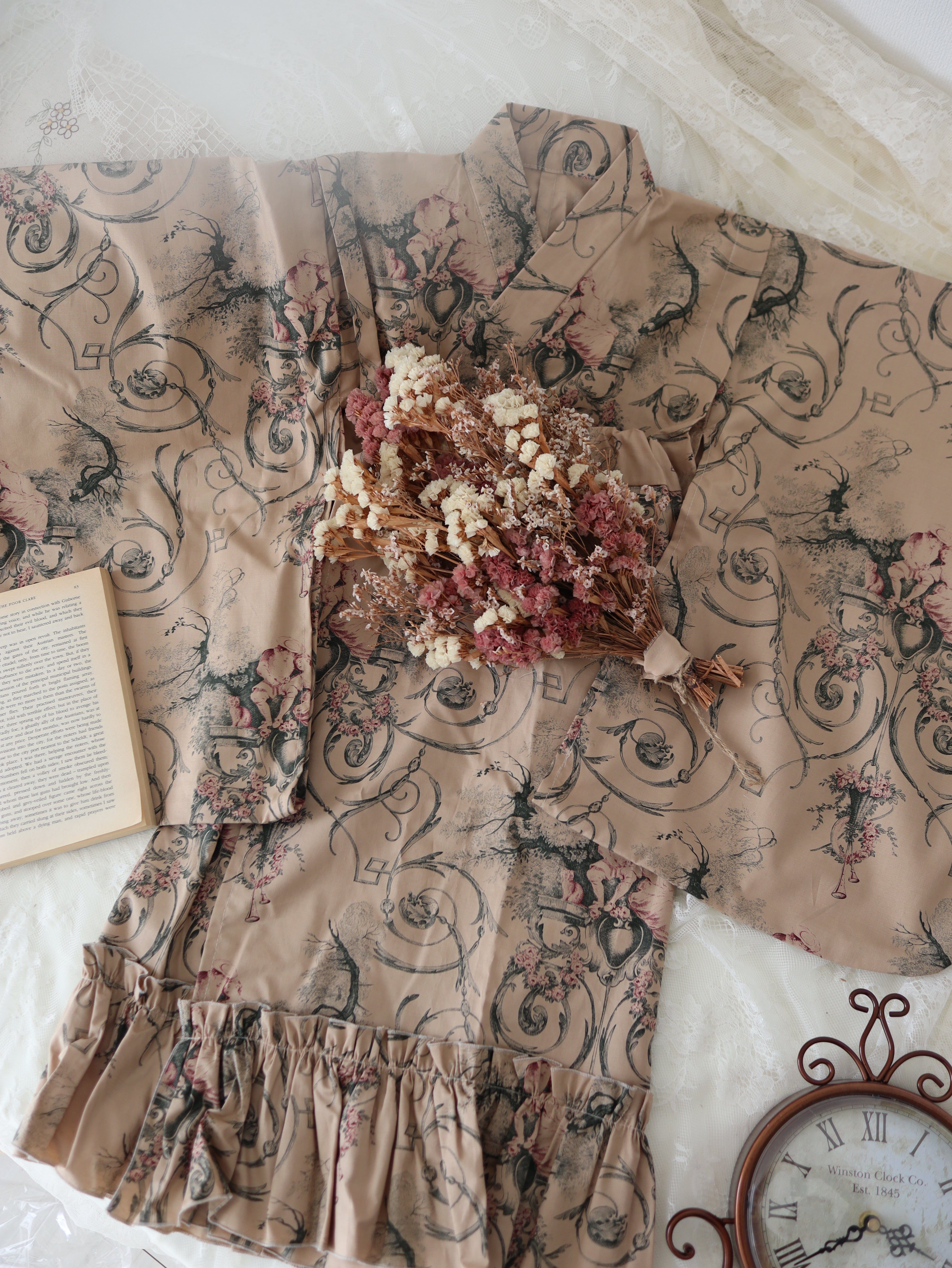 Toile de Jouyの生地を使ったお着物です。