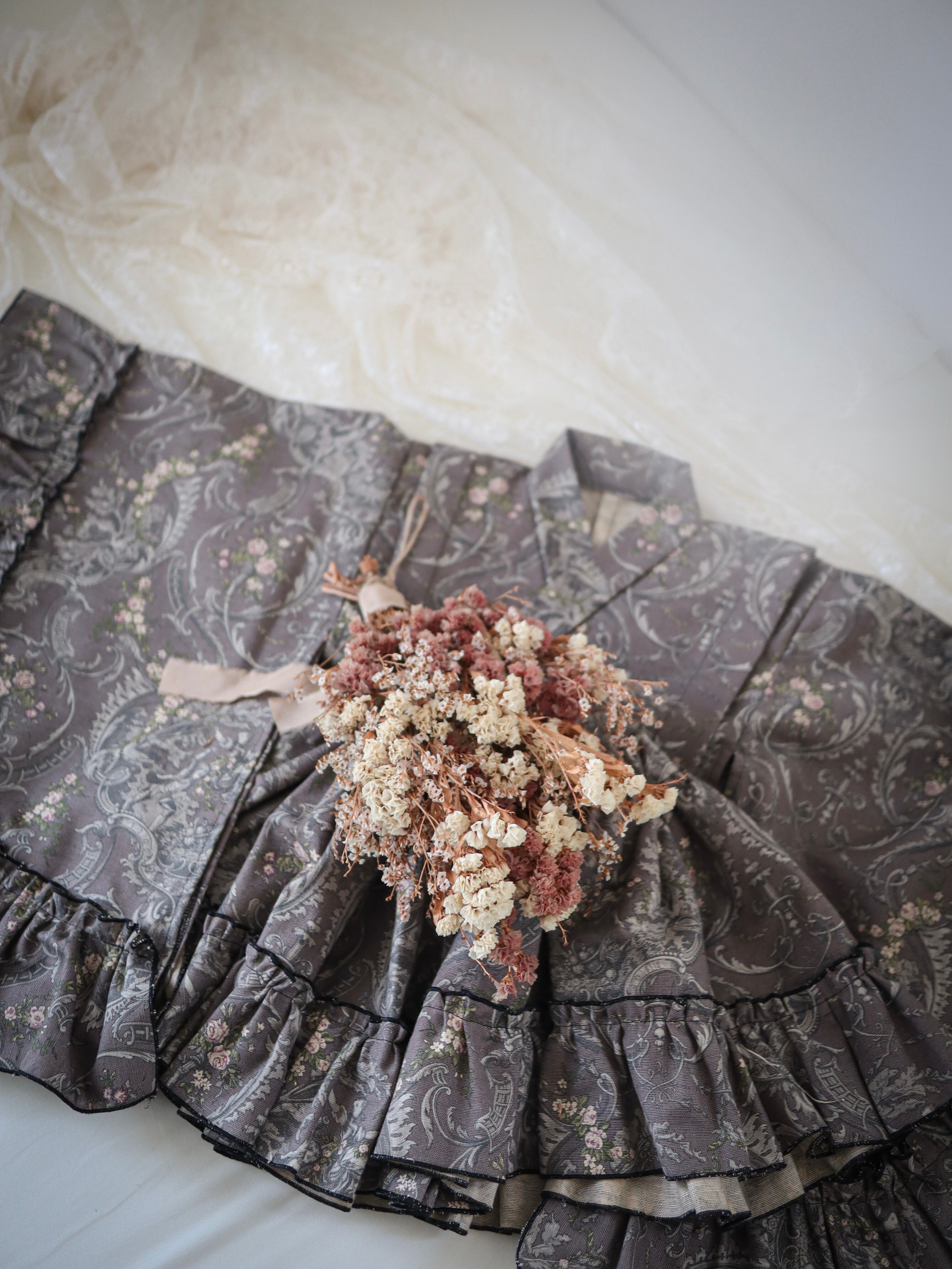 繊細な模様とやわらかなフリルを重ね、