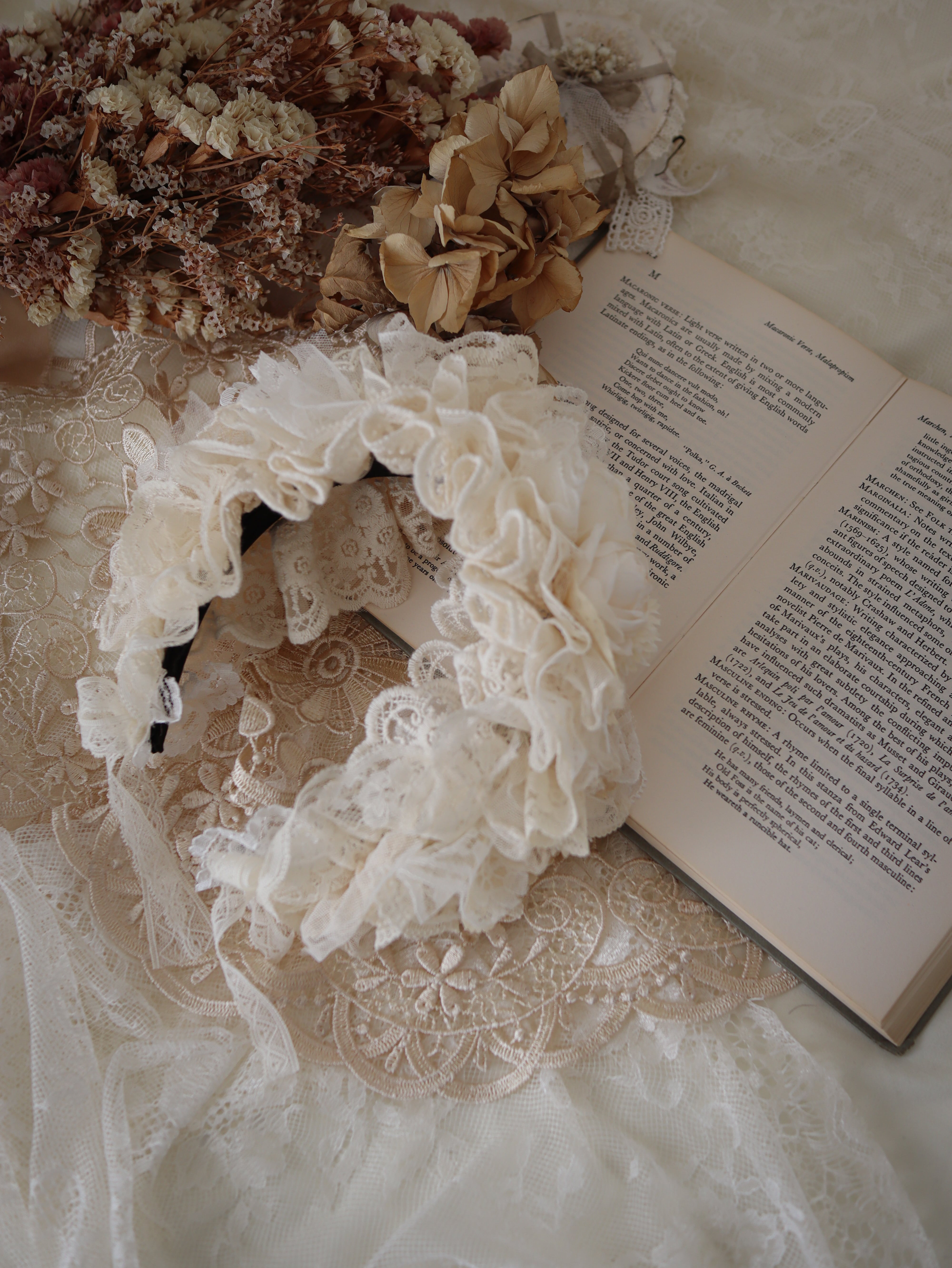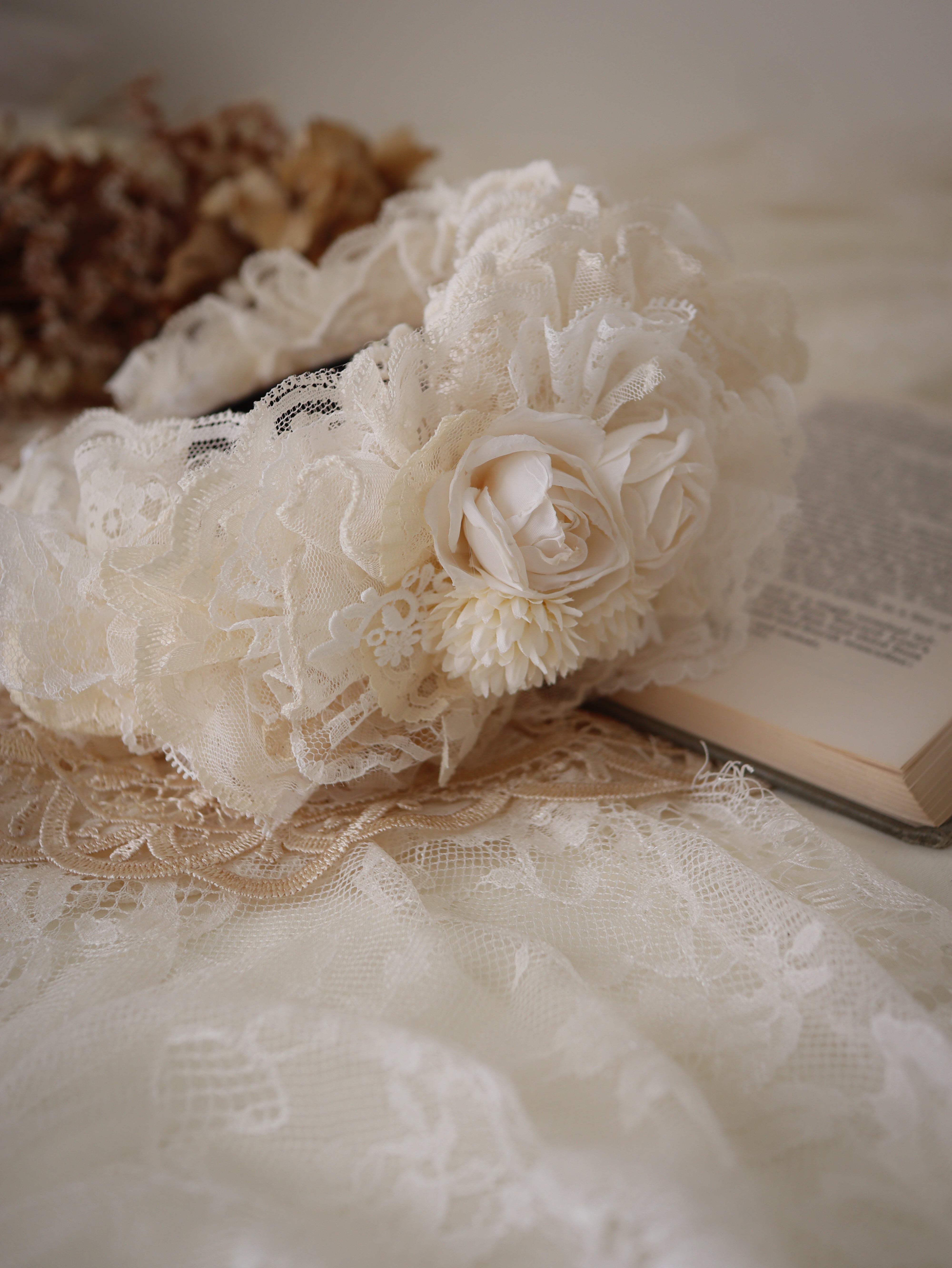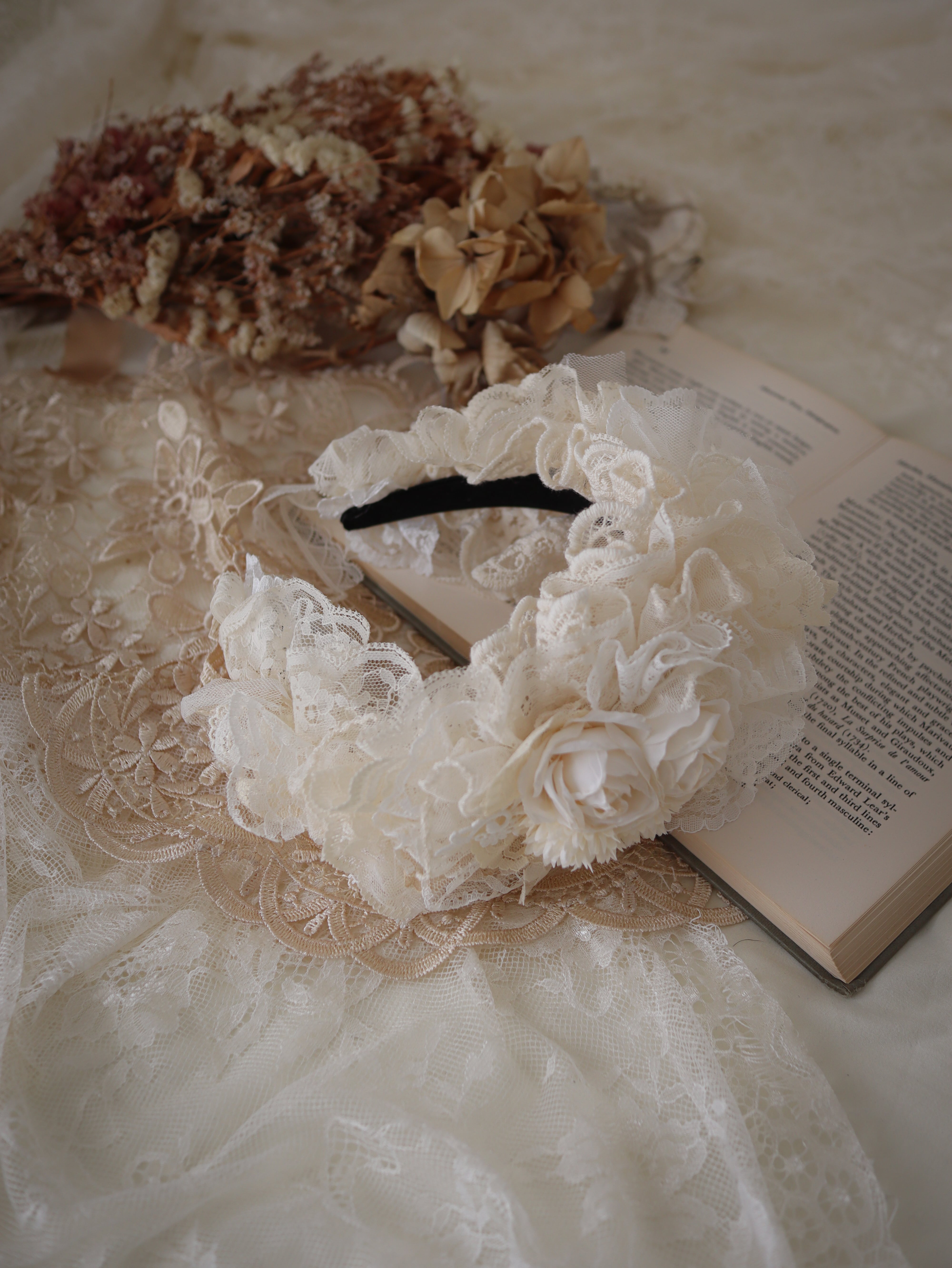 白系のお花とレースを使ったカチューシャです。